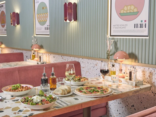 In addition to pasta, pizza, salads and antipasti, there are also delicious homemade dolcis, which are ideal for combining with the Italian coffee specialities. The bar also offers a wide and high-quality range, from cocktails and spritz drinks to good spirits